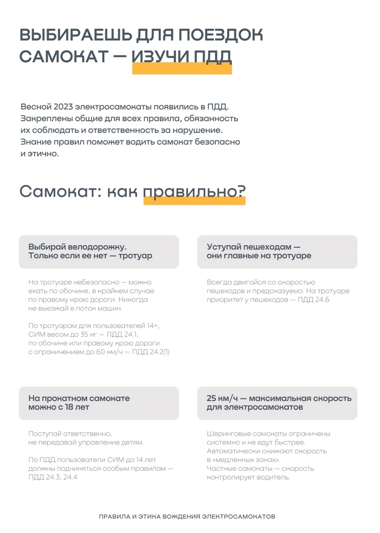 Всё больше граждан выбирают их и другие СИМ для личного пользования, при этом во время катания нередко нарушают ПДД. Знание правил поможет водить самокат безопасно и этично.